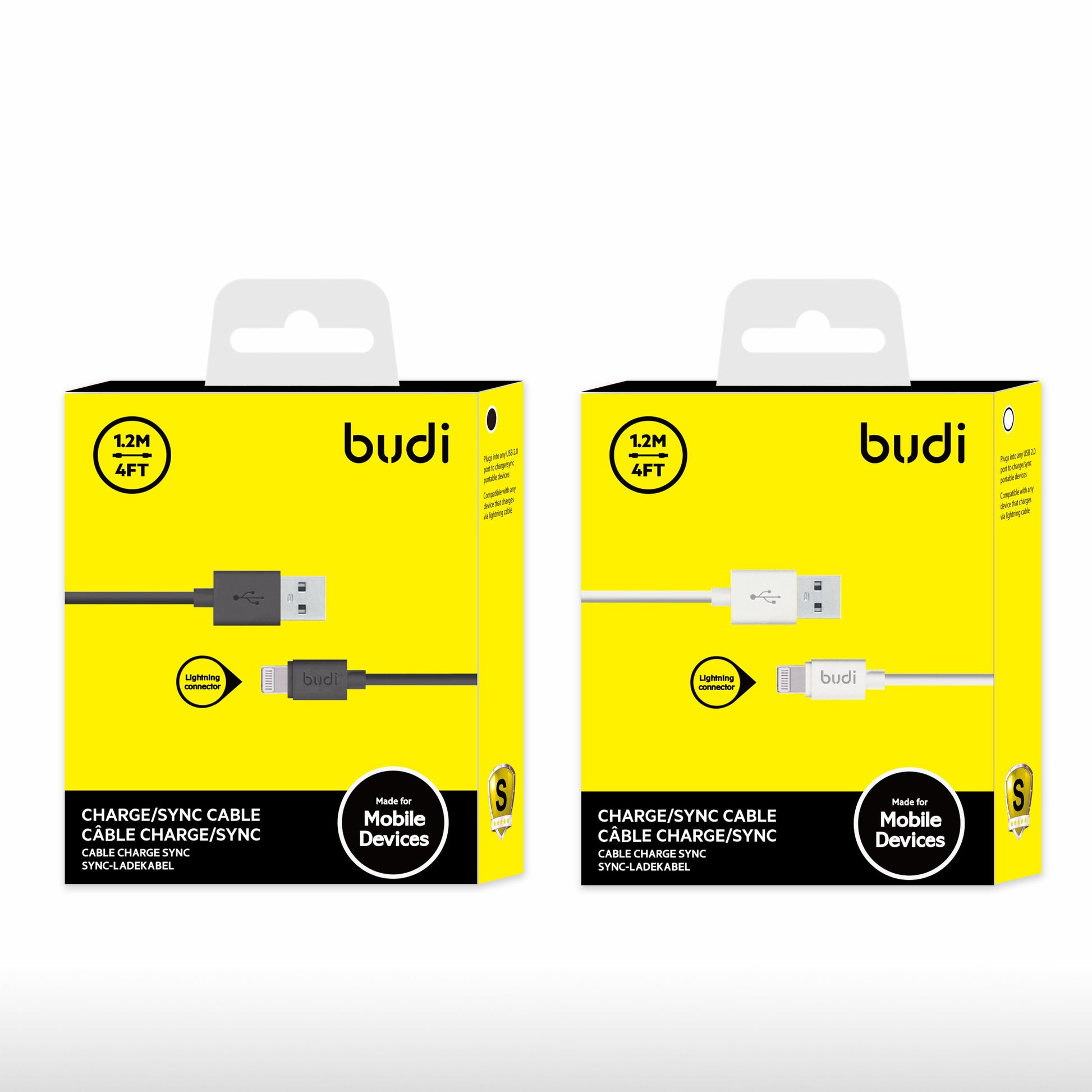 1.2M(4FT) BUDI 2.4A FASTER CABLE FOR IPHONE IN WHITE AND BLACK COLOUR