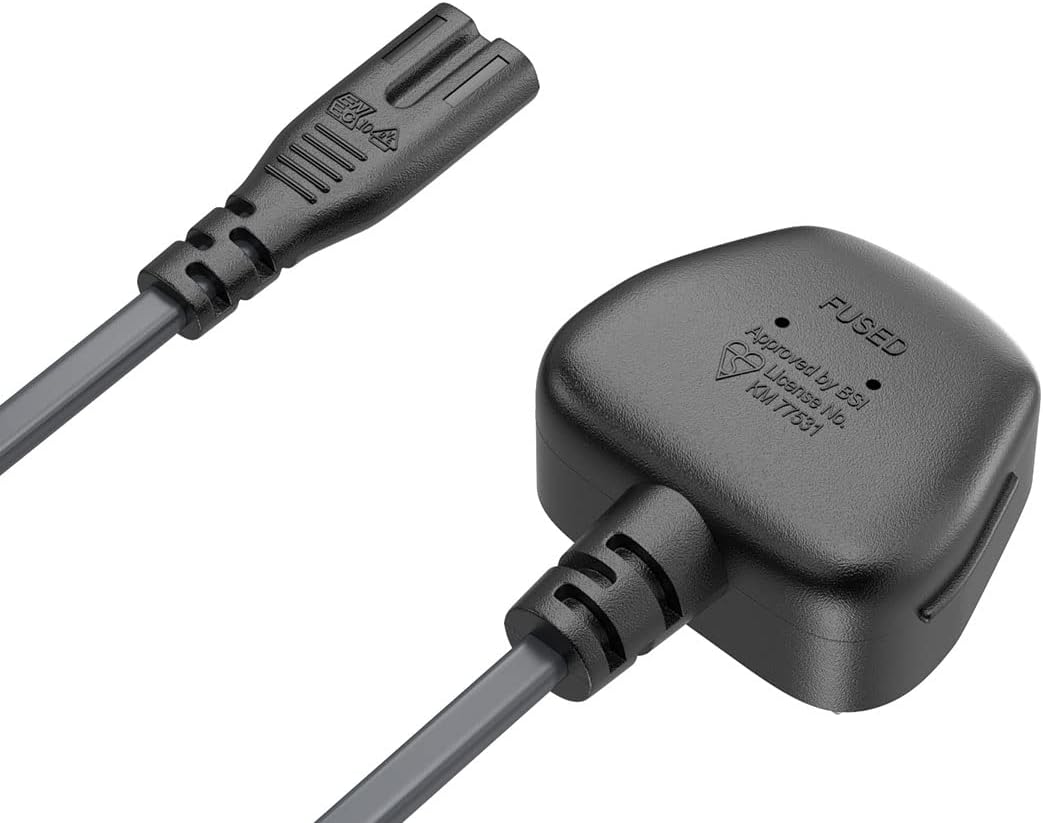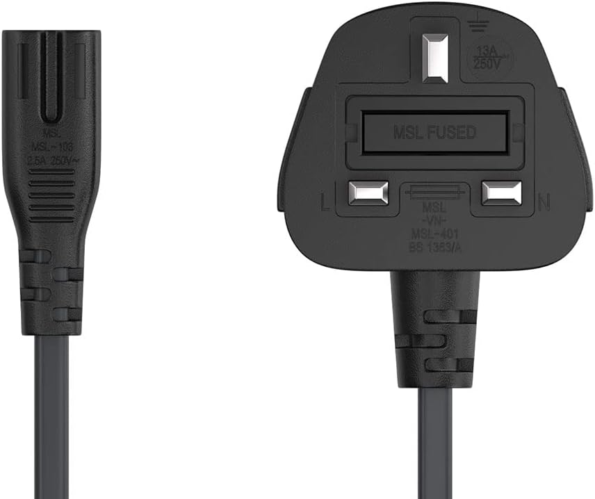 This 1-meter power cord is specifically designed for connecting notebooks and other compatible devices to UK power outlets. The cord features a non-polarized IEC-320-C7 connector on one end and a fused UK BS1363-1/A plug on the other, ensuring safety and reliability for your electronic devices.