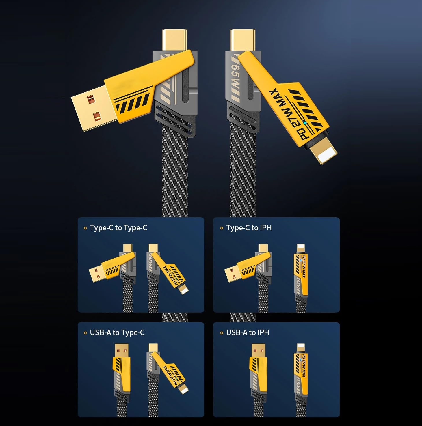65W/27W 4-in-1 Flat Braided Charging Cable [Fast Charging & Data Sync]