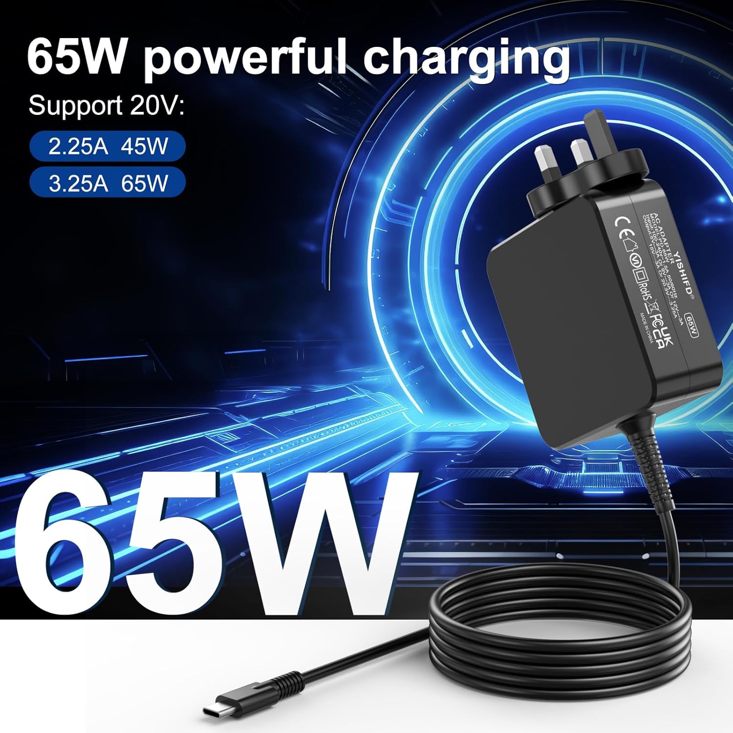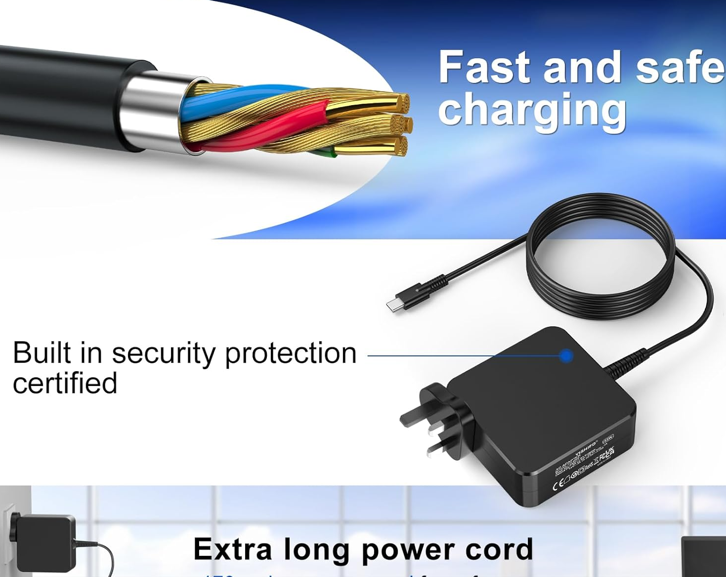 65W Charger USB C, USB C Laptop Charger for Huawei Mate book, Lenovo ThinkPad x1 Carbon T14 T15 T480 T480s T490 T490s, Also used in Samsung, Hp, Asus, Acer, And More Type C Devices
