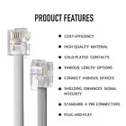 - Equipped with 6P4C (6 Positions, 4 Conductors) connectors, which are perfect for connecting ADSL lines, modems, routers, and landline phones.
