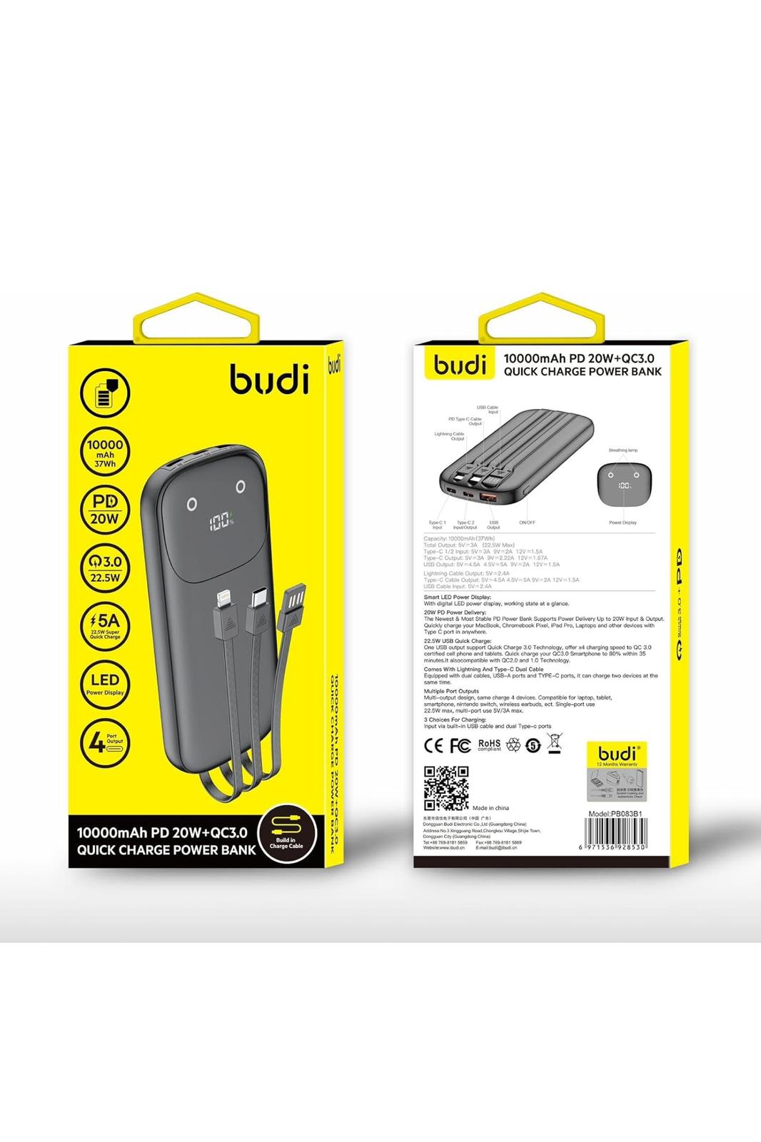 - Budi 10000mAh PD 20W+QC3.0 Quick Charge Power Bank