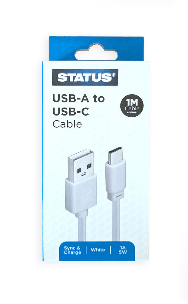 - USB-A to USB-C Sync & Charge Cable for Android & iPhone (1m) by Status