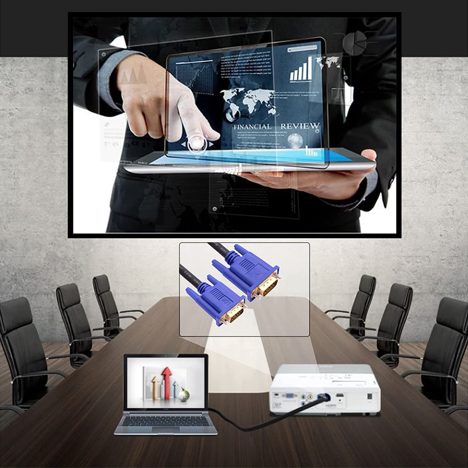 - Use this cable to connect your PC or laptop to a projector or monitor for presentations and meetings.